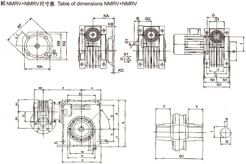 NMRV+NMRV雙蝸輪減速機(jī)標(biāo)記和尺寸表