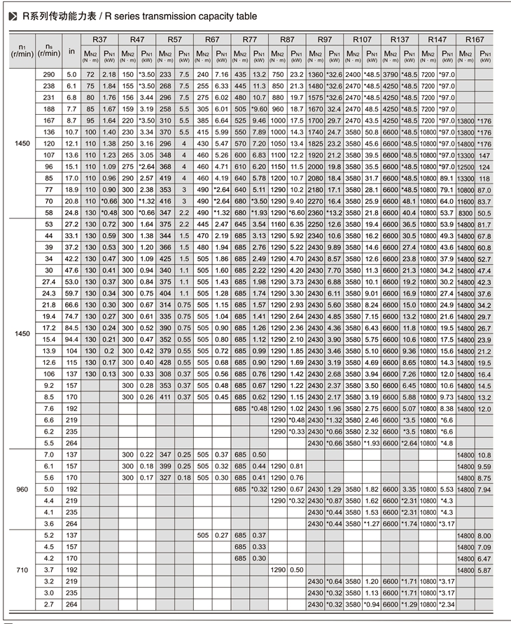 R系列斜齒輪減速機(jī)技術(shù)參數(shù):