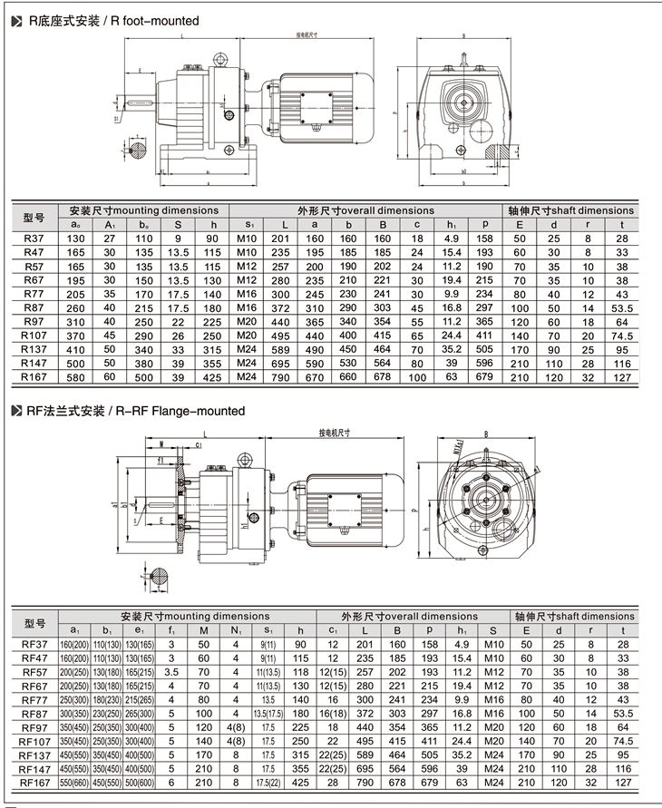 R:軸伸式底腳安裝 RF:法蘭安裝